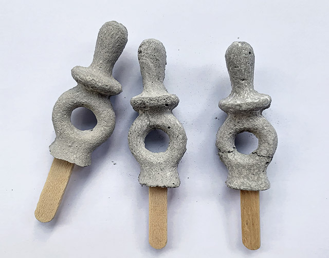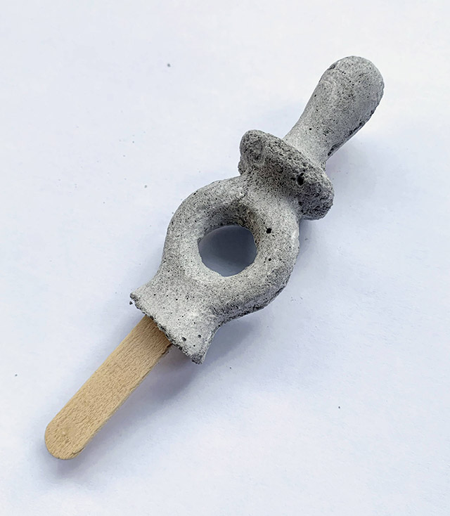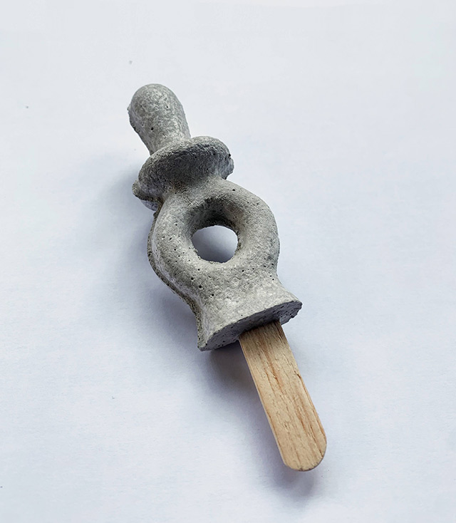 Sabor de infância Sem sabor. Escultura de Pirulitos em formato chupetinha feitos a base de concreto.11×3,5x1cm 2023 Voltar